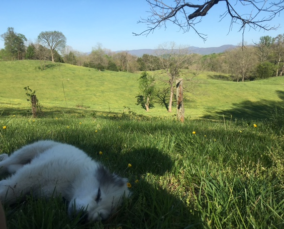 Now, I feel like I jinxed myself. It is still sunny and beautiful—perhaps even more so as the rain this week is making the buttercups glisten and all of leaves pop out on the trees. But, there are two huge differences: (1) my left arm is paralyzed and (2) our sweet beast is no longer enjoying a puppy nap on my toes, but is instead permanently at rest. I have a deep ache in my shoulder and a longing in my heart. How quickly life can turn on us.